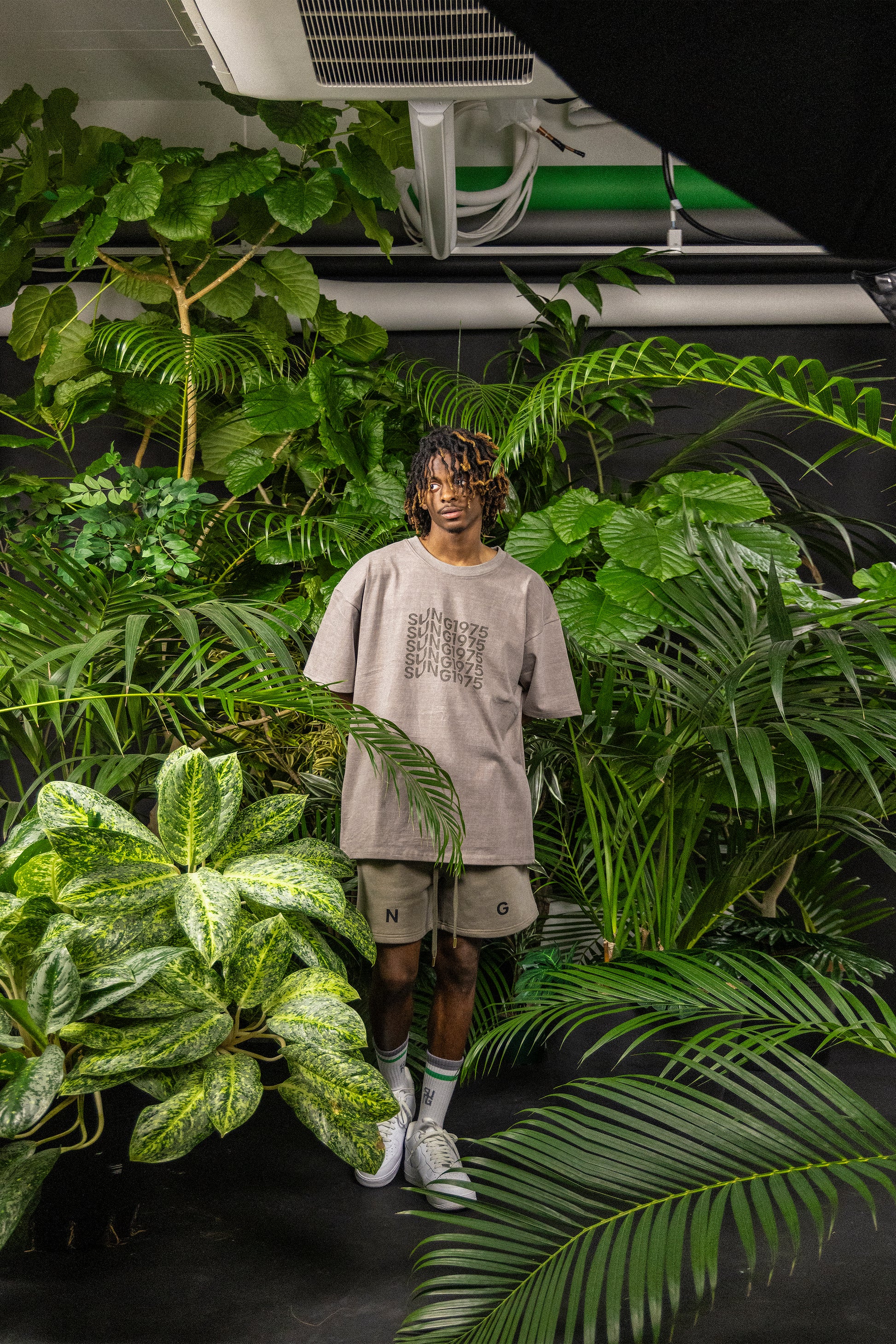 前身頃にはかすれたロゴプリントをあしらい、ヴィンテージライクな雰囲気をプラスしました。ゆったりとしたオーバーサイズシルエットで、トレンド感と快適さを両立。タウンユースにはもちろん、ワークアウトにも対応する万能アイテムです。スタイリング次第で幅広いシーンにマッチする一着を、ぜひお楽しみください。