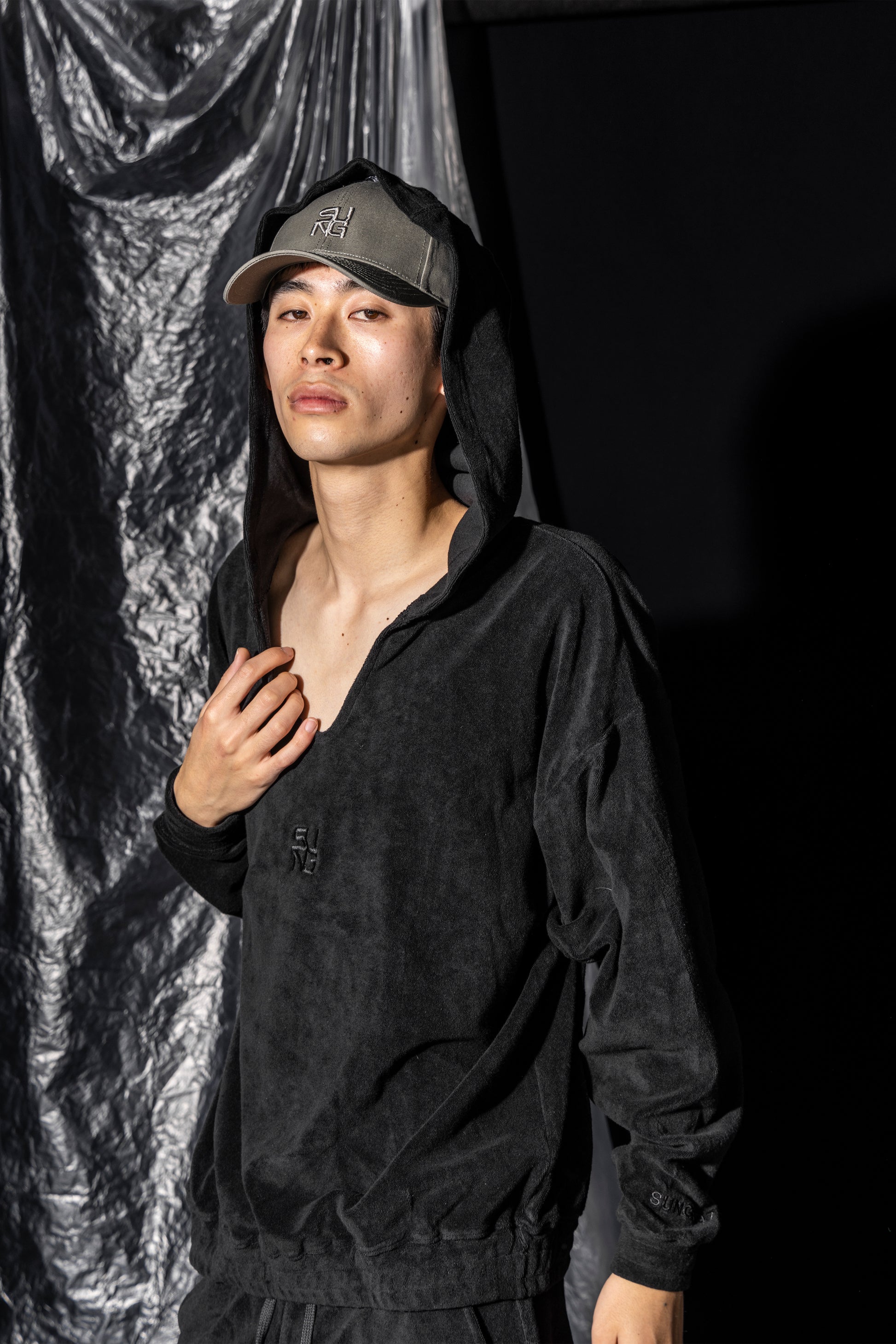 フロントにシンボルロゴ、バックにアーチロゴ、サイドにラバーネームを施したキャップ。