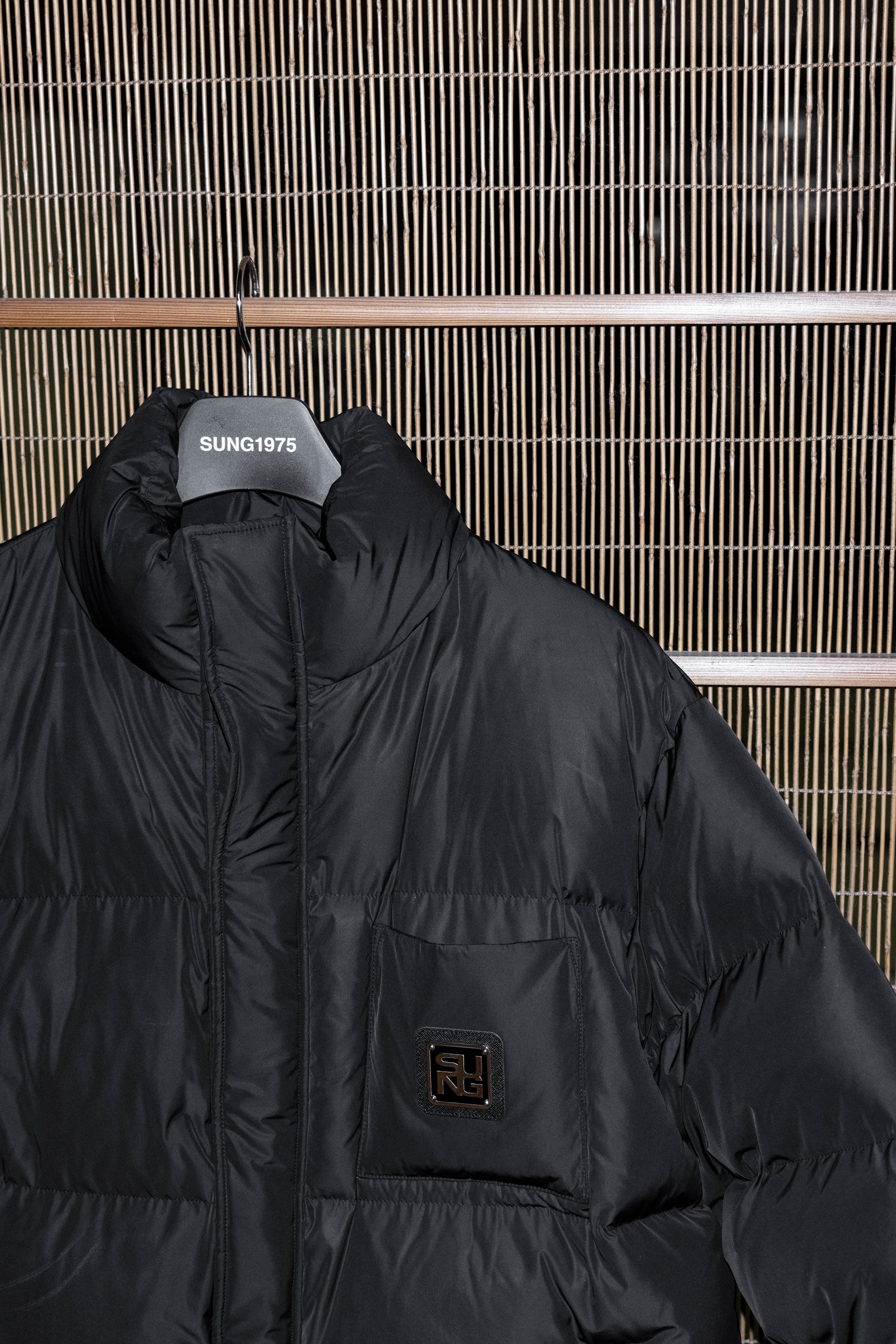 シグネチャーロゴプレートとブラックロゴ刺繍でシンプルながらもスタイリッシュさもあるSUNG1975らしいデザインに仕上げました。