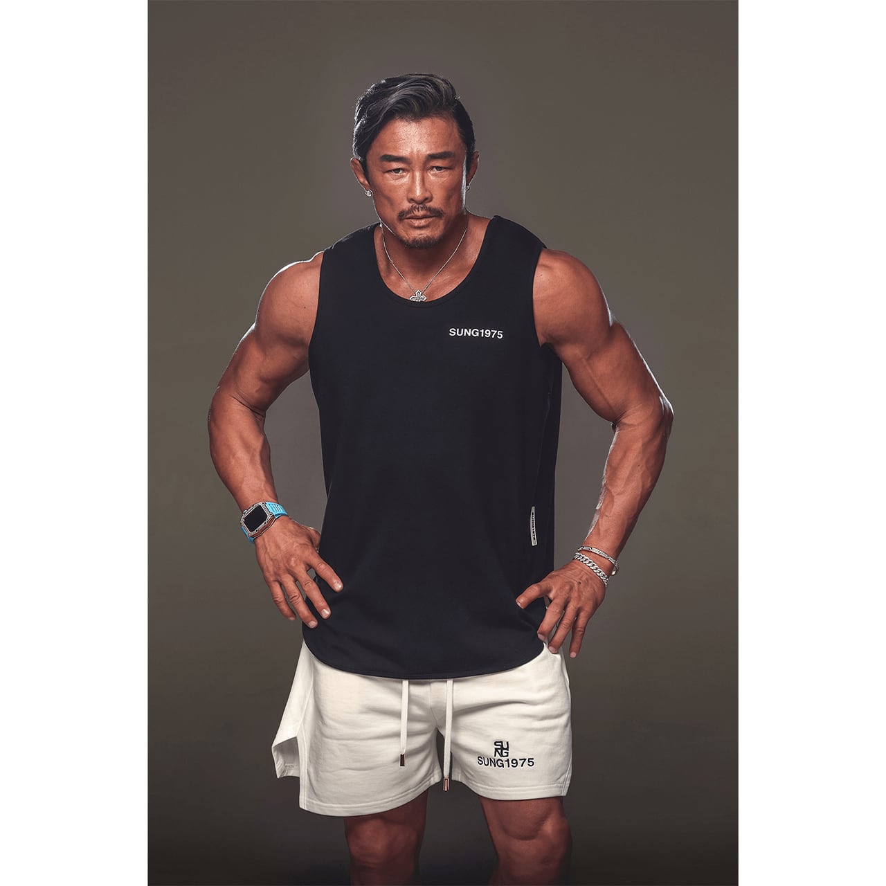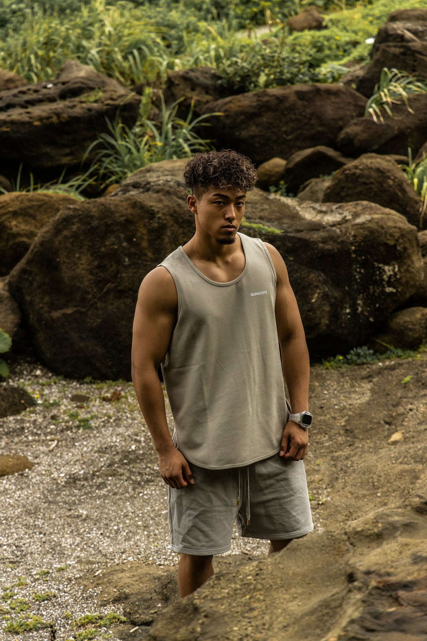 表と裏で組織の違う編み方で編まれたしっかり厚地の生地を使用したタンクトップ。