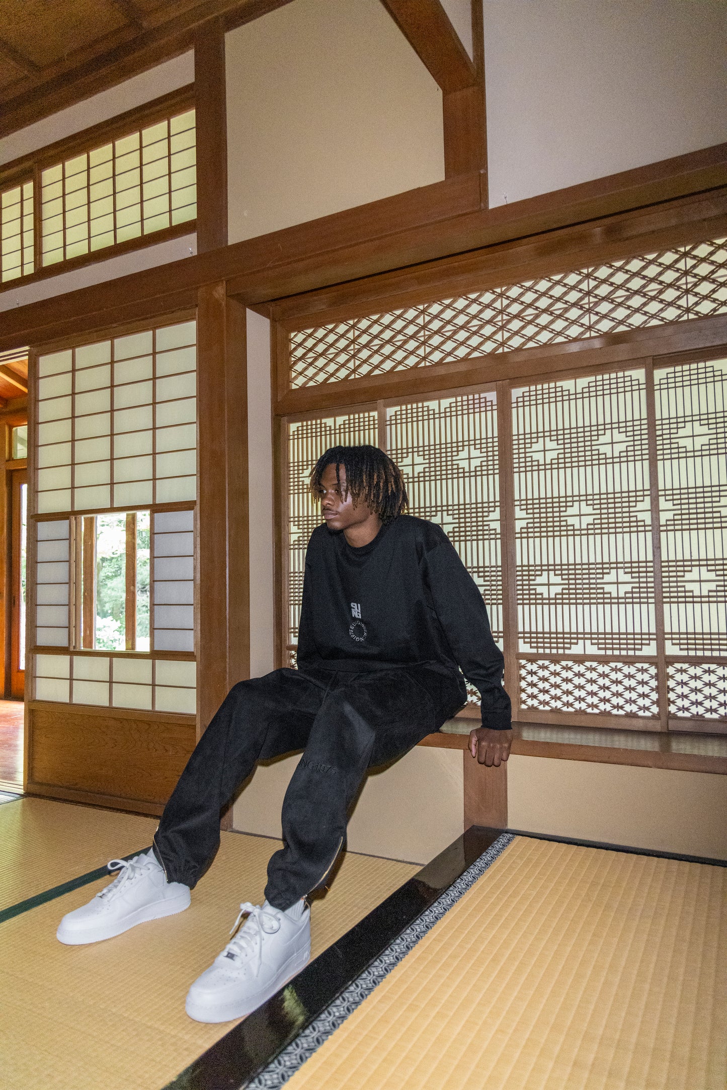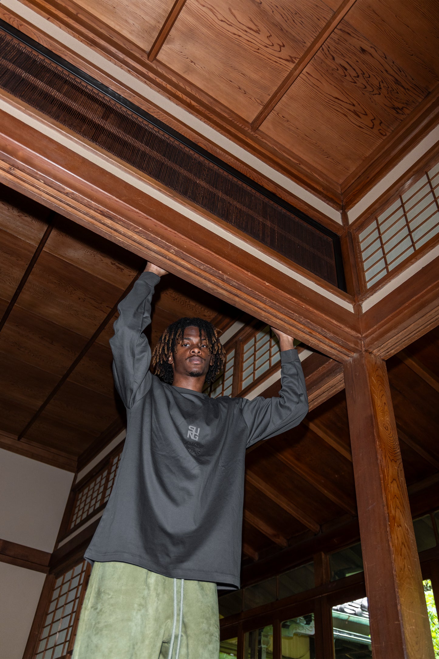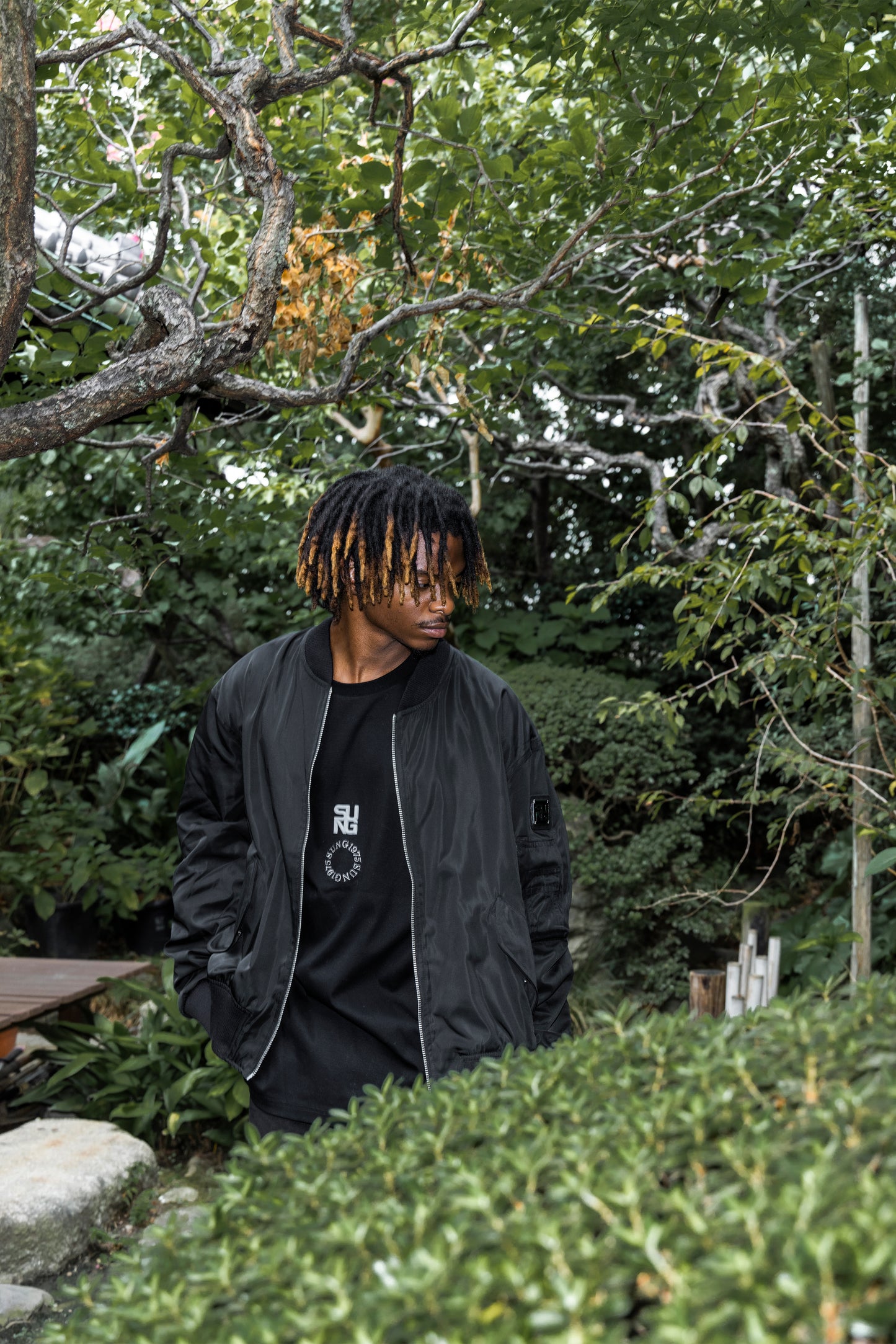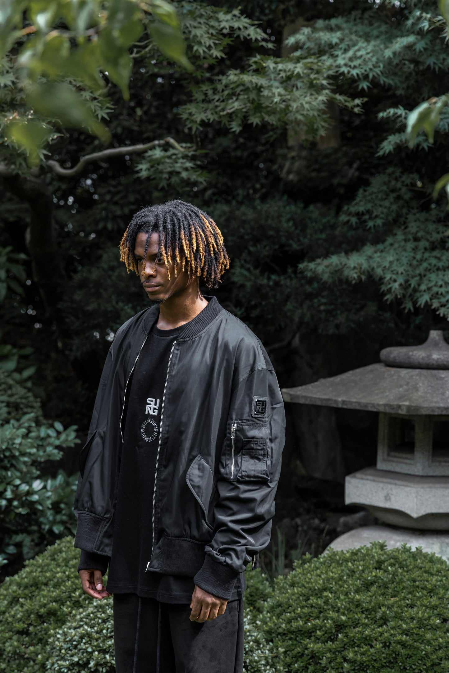 3Dロゴとサークル刺繍を施したロンT