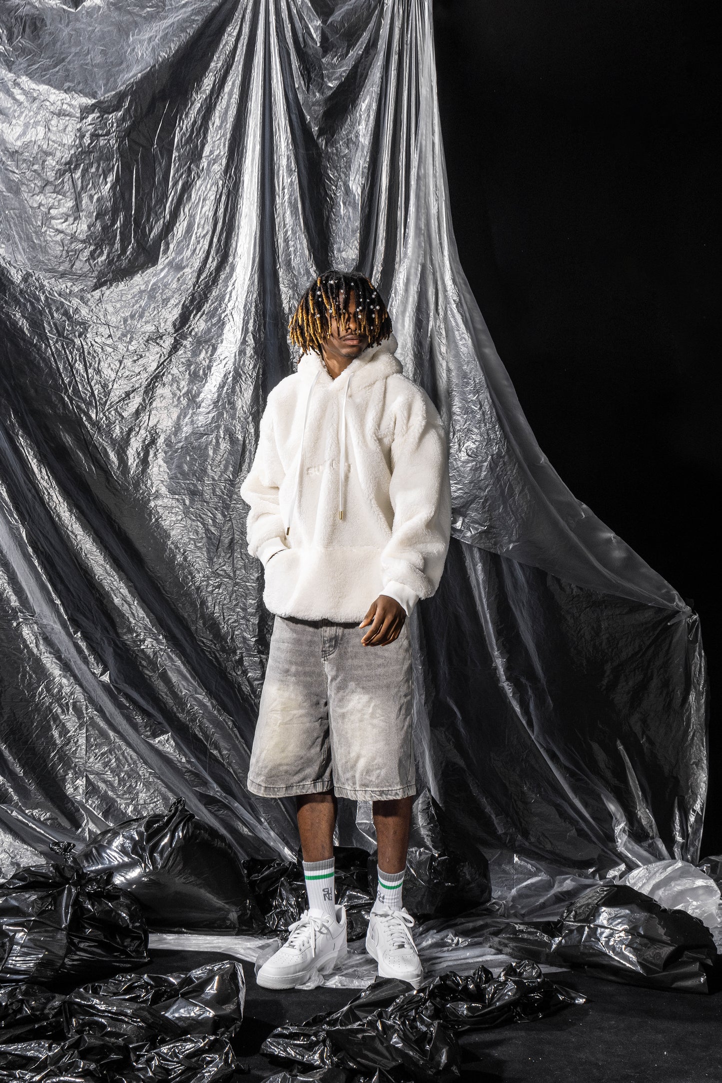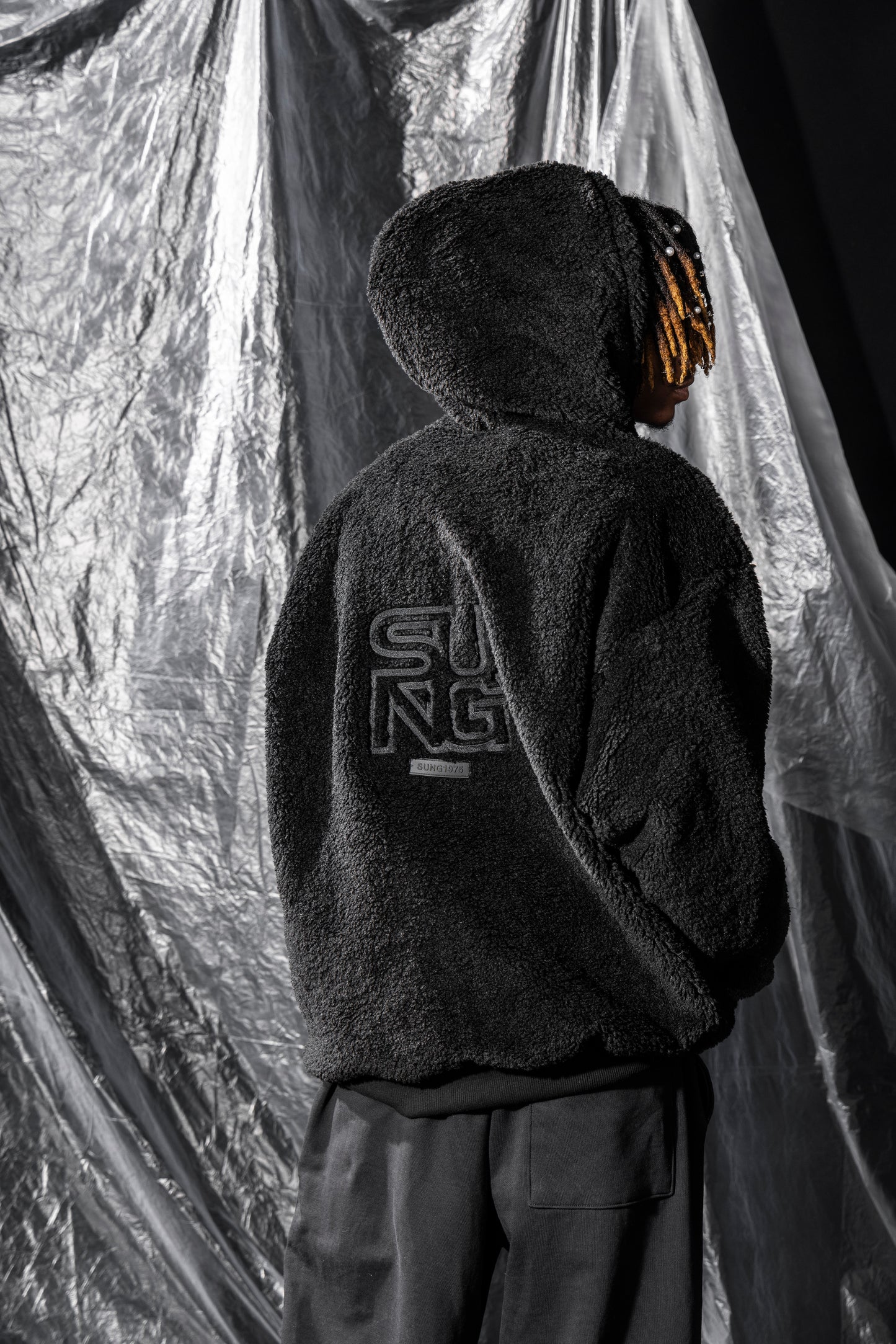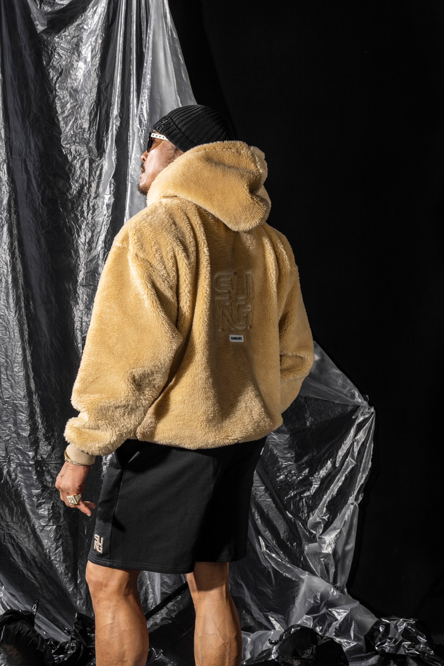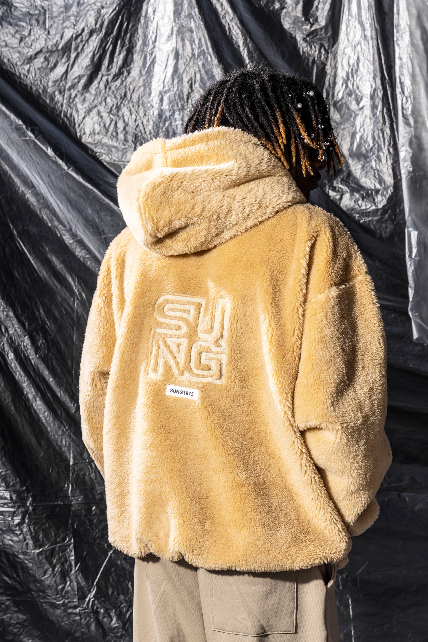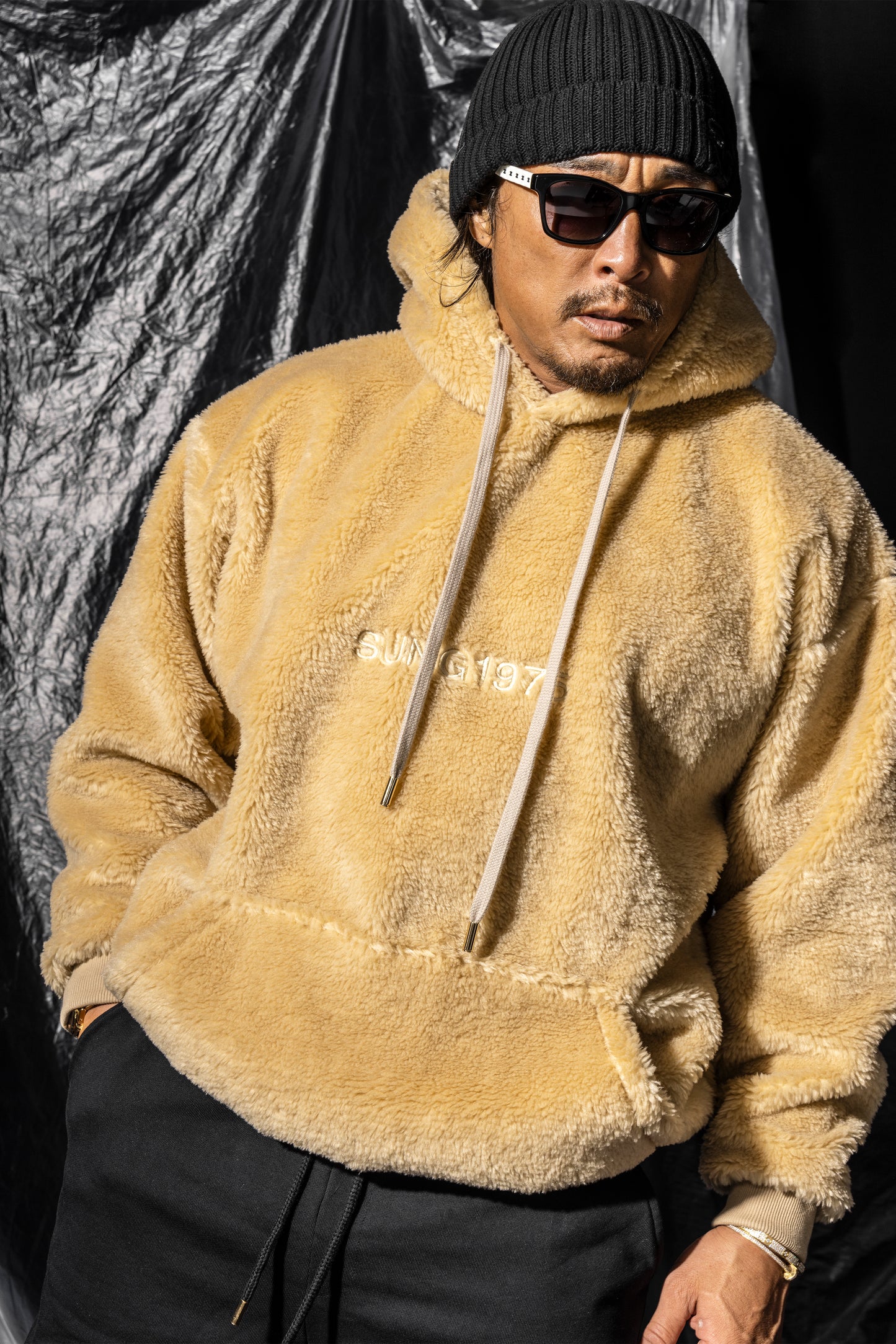 存在感のある毛足の長いボア生地を使用したオーバーサイズフーディ