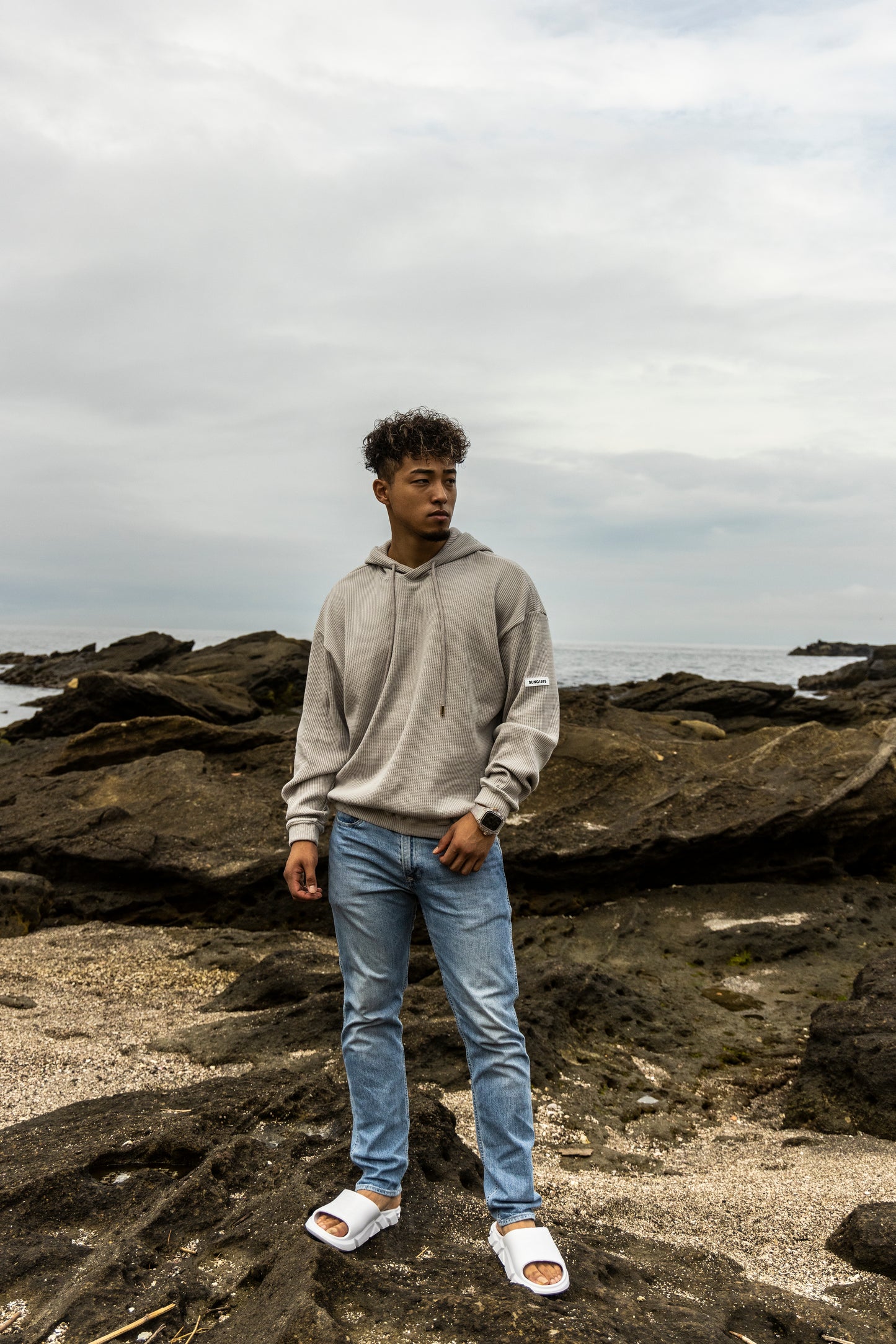 脇にシグネチャーロゴの刺繍を施し シンプルなデザインに仕上げました。