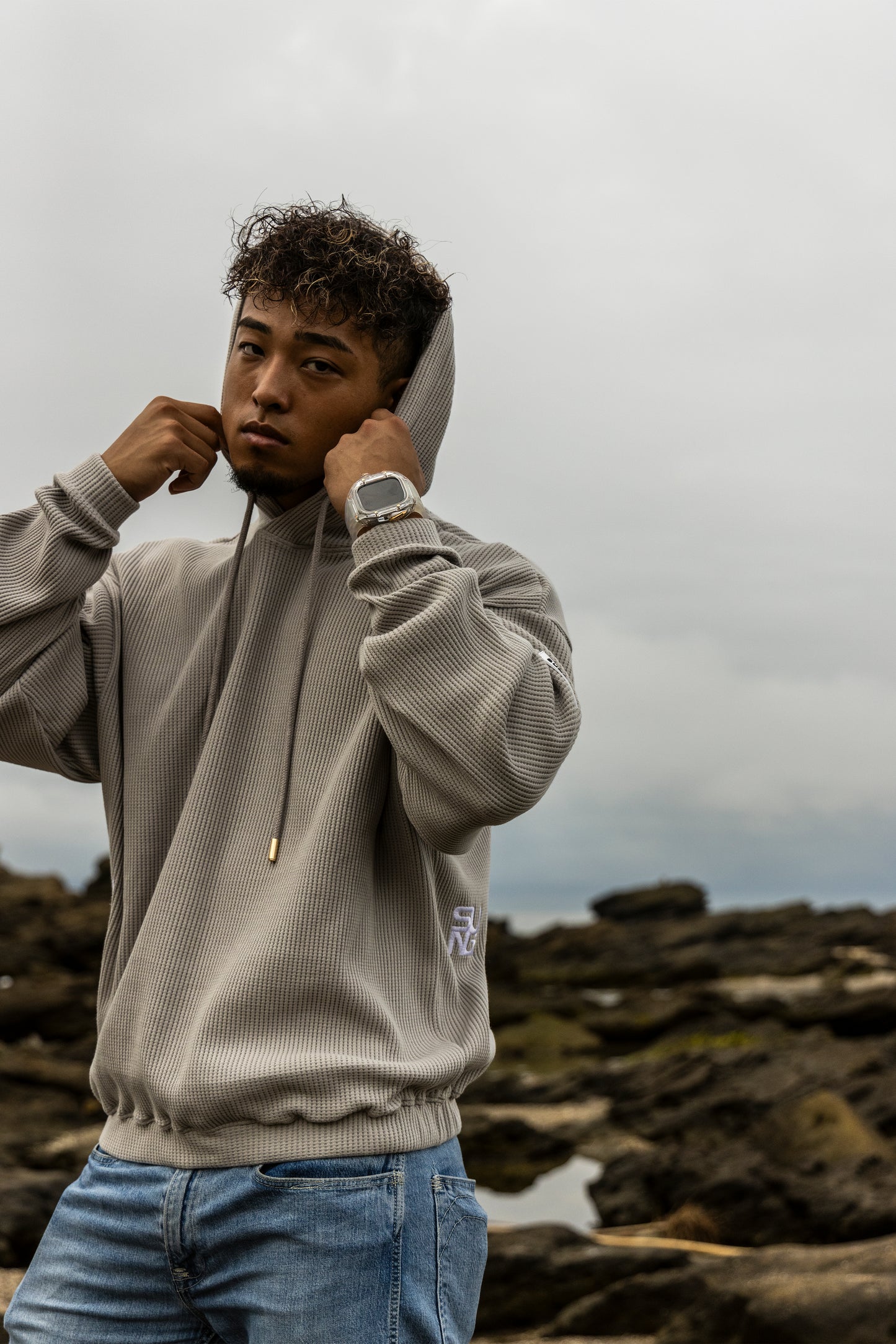 ワッフル生地を使用したフーディ。