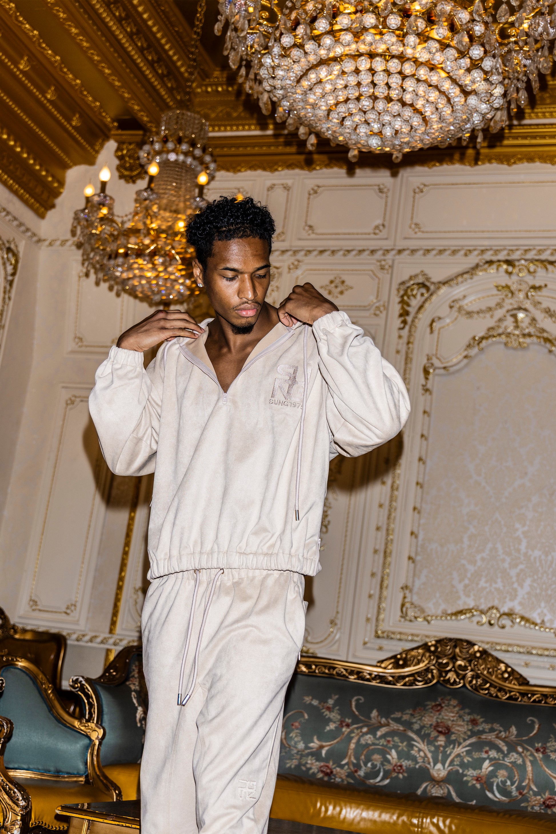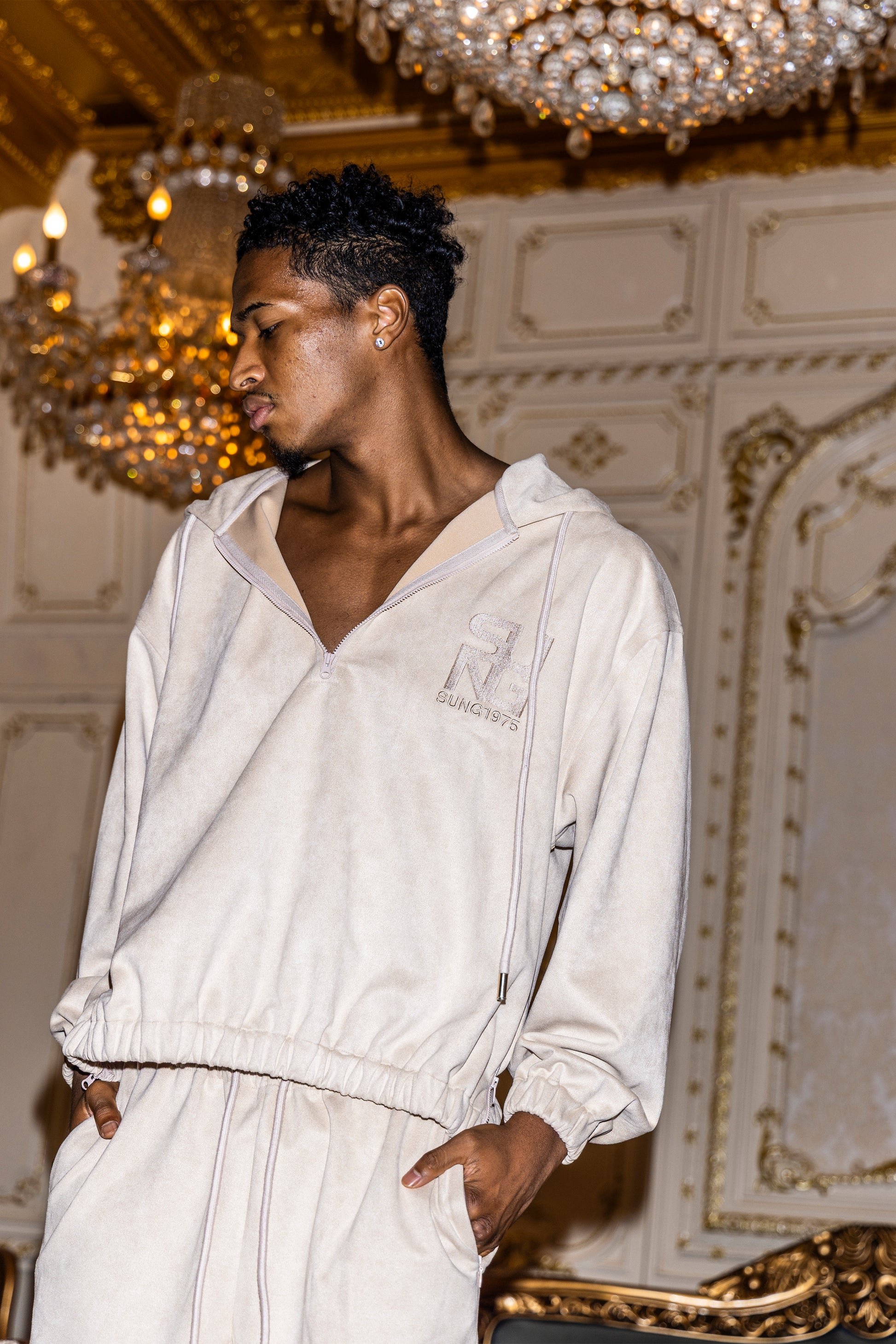 HALF ZIP FAUX SUEDE LIKE HOODIE