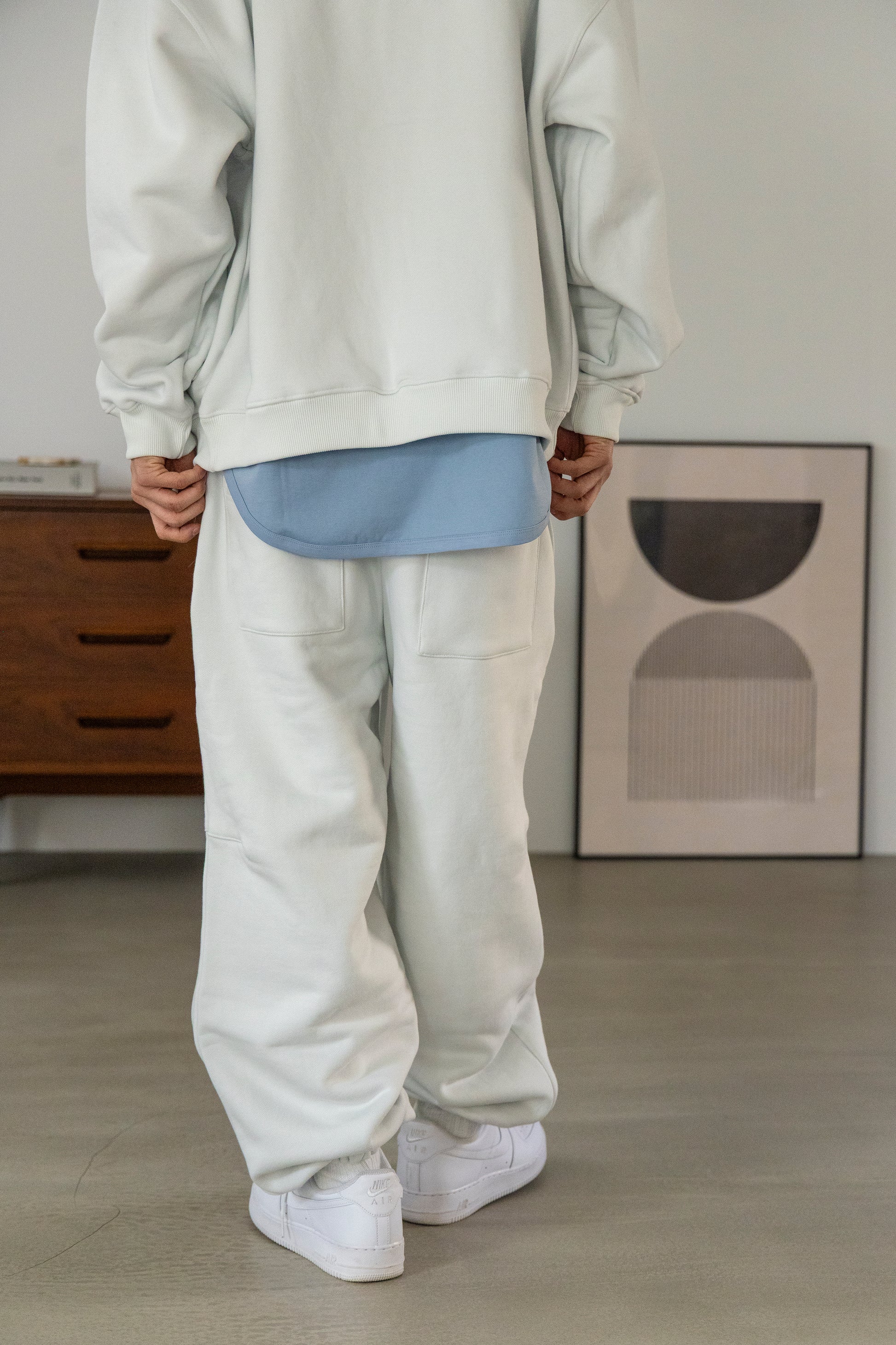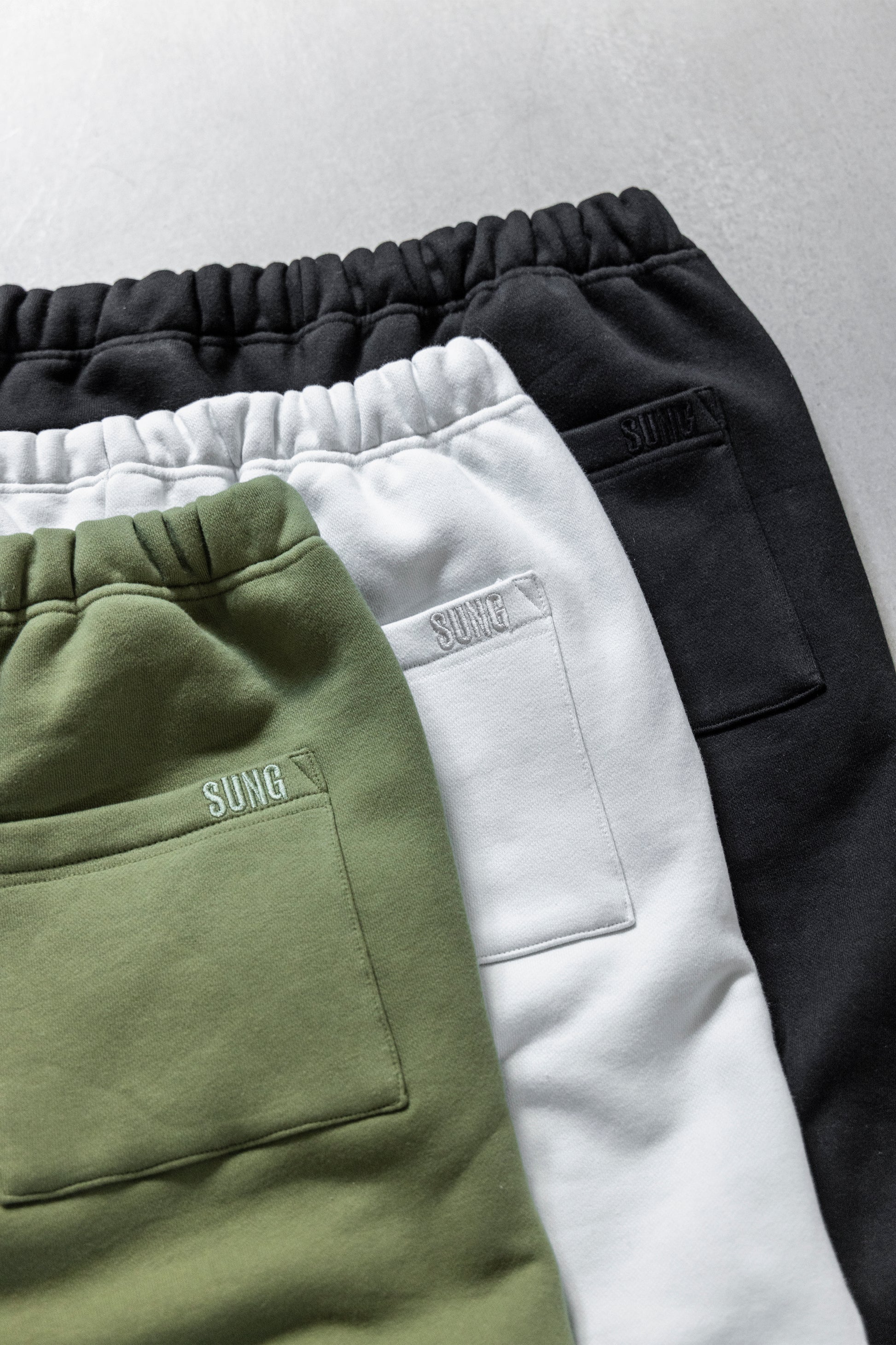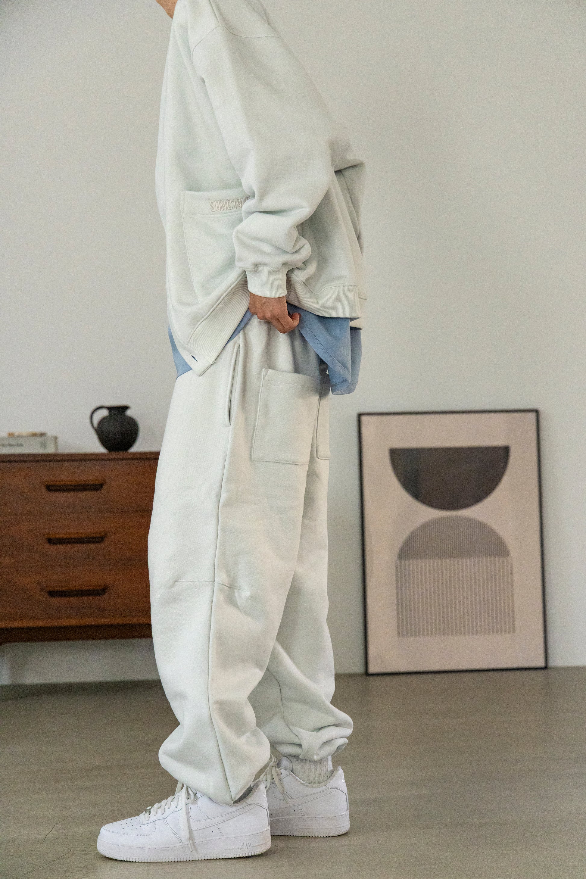 BRUSHED SWEAT CARDIGANと同素材を使用した、細部のディテールが光るスウェットパンツ。